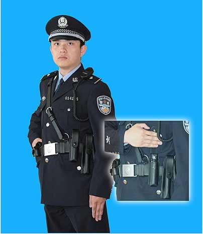 (3)、對講可掛在武裝帶右手邊,左手掛強光手電、伸縮警棍等物。