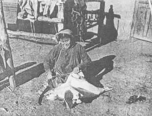 這之后,我們來到鄂倫春族的一個定居點——托河做調(diào)查。托河保留著比較完整的鄂倫春族狩獵文化,男人們打獵、捕魚,女人們則負責(zé)做飯、熟獸皮、用皮子做衣服等。女人縫獸皮衣時,用的針還是骨針,線則是野獸的筋。當然,她們還用樺樹皮做各種生活用品,如籃子、盒子、筒子等。