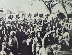 冀中農民舉行擁護土地改革運動大會(翻拍于西柏坡紀念館)。 新華社記者 朱旭東攝
